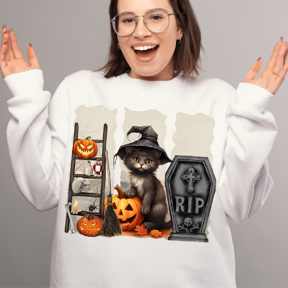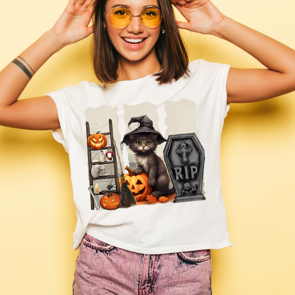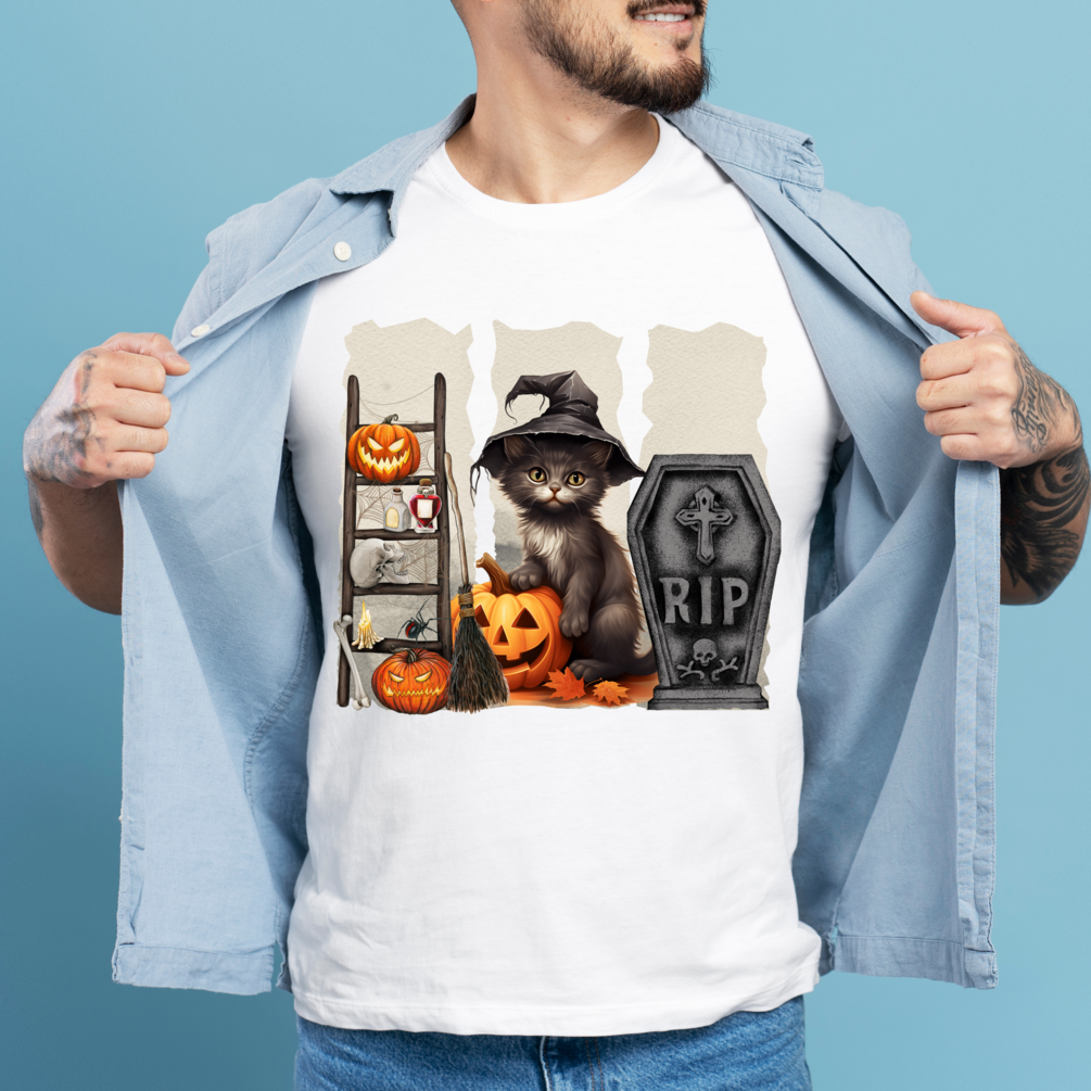 There is a spooky cat design that you can print on t-shirts, mugs and pillows.