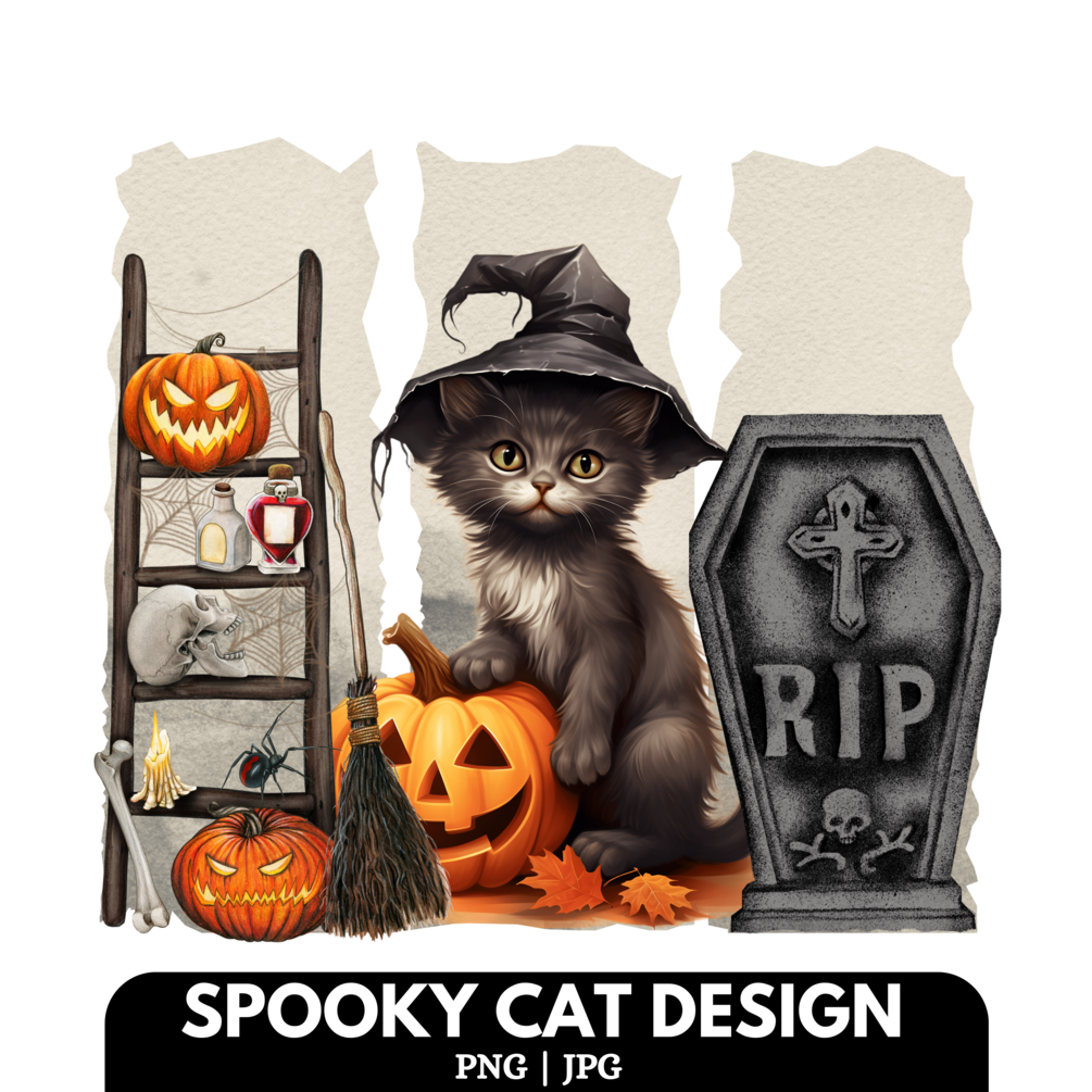 Spooky Cat Design, Halloween Cat Design, Spooky Season, Pumpkin Face PNG, Stay Spooky.